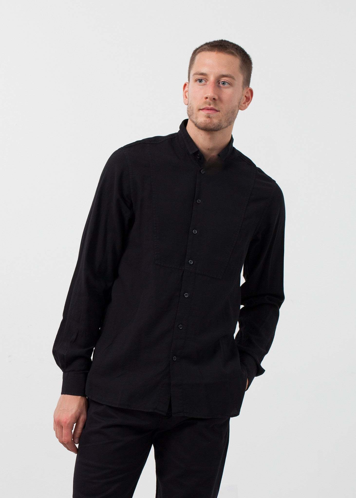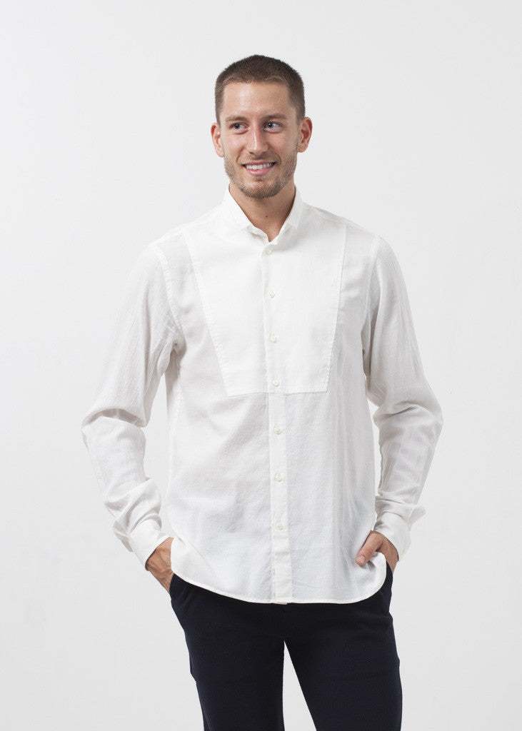 With the formal elements of tuxedo in an ease fit. This piece is versatile and classic. Hansen. 100% Cotton. Made in EU. Matt is wearing a size Medium. Matt is 6’2”, Chest 38”, Waist 31”, Inseam 34.5”.