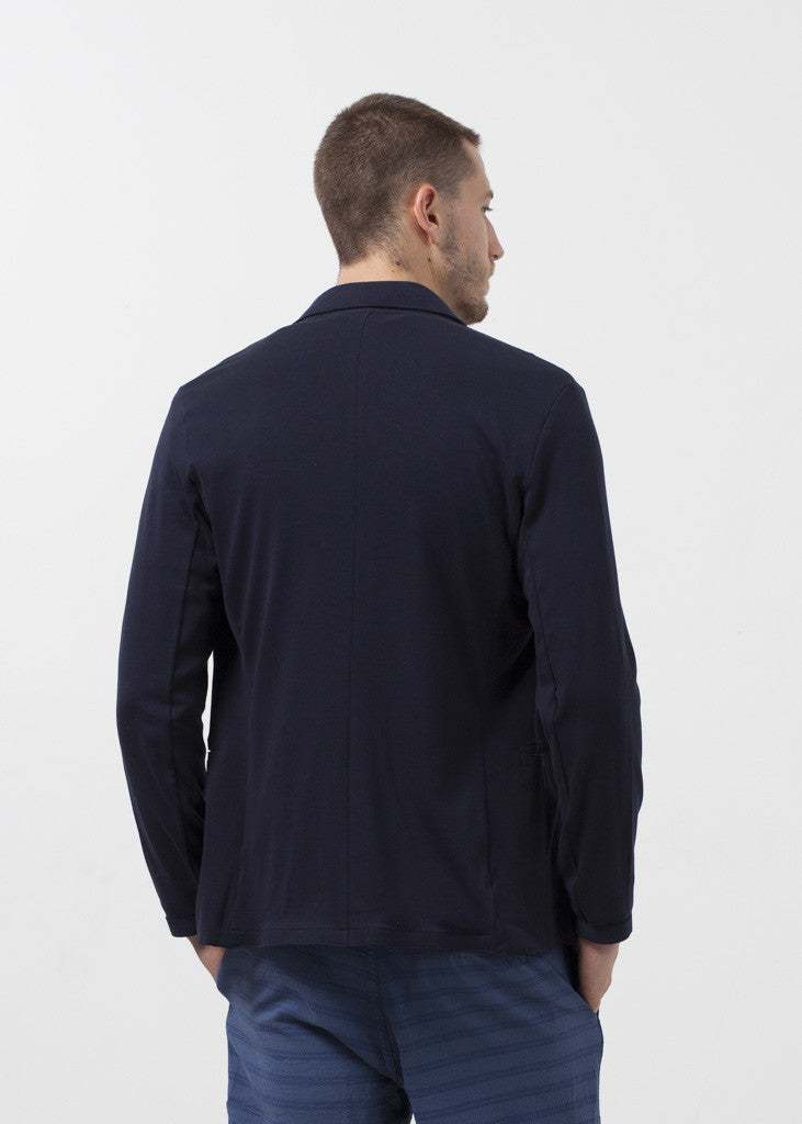 Amiable texture for the pleasure seeking. Plenty of stretch with the coolness of summer. Four button closure at front. Two exterior pockets, one interior. Homecore. Color Navy. 90% Cotton, 10% Elastane. Made in Portugal. Matt is wearing a Large. Matt is 6’2”, Chest 38”, Waist 31”, Inseam 34.5”.
